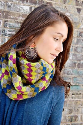 Picking colors is half the fun in this bold and graphic colorwork cowl worked in worsted weight yarn. In addition to options for either an infinity scarf or a standard cowl there are instructions for a second version in fingering weight yarn. This design is knit in the round, using a provisional cast on and Kitchener stitch grafting. The Color Swatch Cowl is an addicting knit and a great option for a knitter new to colorwork.