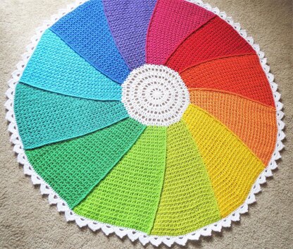 The Color Whirl Blanket is a beautiful, vivid blanket inspired by the color wheel! This blanket features a lacy center motif, swirling colors and a delicate petal edging for a truly stunning finished project!