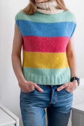 For a single color slipover, you need approx. 690 (715, 800, 865, 960, 1075, 1190, 1260) yds / 630 (655, 735, 795, 880, 985, 1090, 1155) m bulky yarn