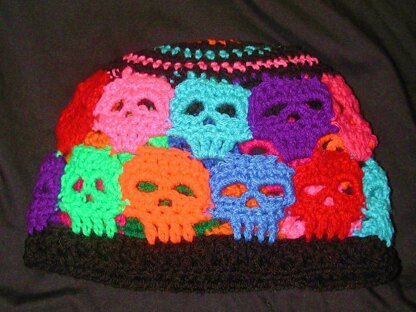 Pattern includes directions for a beanie and ear warmer. Good Stash buster. Each skull takes less than 5 yards. Thank you Sheli Mallory Vrieze for measuring that out for me. Pictures of almost ever step. American crochet terminology. My e mail is on the pattern in case you want to ask questions