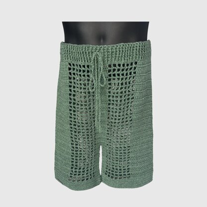 Unisex crochet mesh shorts pattern for both men and women in 8 sizes from S to 5XL. These lightweight summer shorts are ideal for beach wear, festivals, and relaxed warm-weather outfits. The shorts are worked seamlessly from the top down, then divided for the legs, with no side seams to sew, and include an adjustable waist and leg length for a comfortable fit.