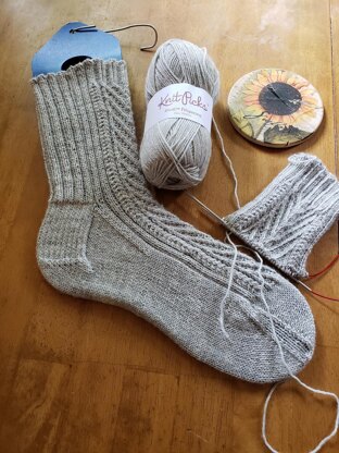 If knitting were music, the stitches would be the keys, and the repeats would be the time signature. If knitting were music, a simple two-by-two rib could be translated into the Key of C (no sharps or flats, just natural notes), in 2/2 time, (or cut time). Changing just a few stitches (the notes) to cables or lace (sharps or flats) the entire musical world is at your knitting fingertips. Tonight the band is playing covers of 60’s soft rock songs, while twisted stitches travel across your knitting, then “Come Together” in the middle of your sock.