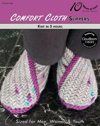 Rally your needles to whip up a pair of woolly, woven-look slippers! Sized for men, women and youth, these knitted foldovers feature herringbone fabric atop a contrasting garter stitch sole. Best of all? There’s no sewing or finishing needed. So they’re not only fast, but they're fuss-free too!