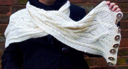 Belinda was inspired to make this snood by the cable pattern she used on her improvised Aran coat.