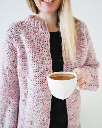 The Confetti Dreams Cardigan is a raglan crochet cardigan made top down crowned with balloon sleeves. The balloon sleeves could be made as tighter sleeves if preferred. The top down construction makes it possible to try on during the process and you can adjust the length of the cardigan and sleeves easily as you go along.
