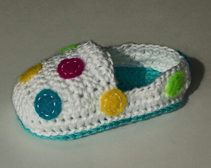This pattern is very detailed and has LOTS of photos to assist even the beginner! Sole sizes range from 3 3/4" to 4 1/2"