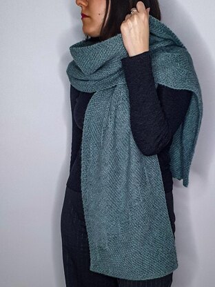 ‘Controcorrente’ is an Italian word that means upstream, against the tide. This wrap is knitted on the bias with strong, raised chevrons that resemble a never-ending series of waves and can be looped around the neck or wrapped around the shoulders when you want both comfort and style.