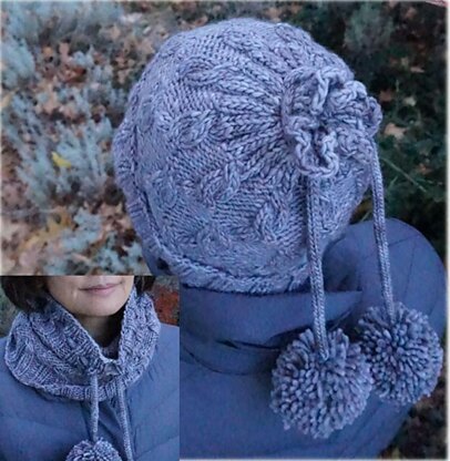 This tubular cowl is knitted in the round with a spiraling cable pattern. An i-cord threaded through eyelets can be cinched and transform the cowl into a hat. A multipurpose accessory to keep either your head or neck warm. Both chart and written directions are given.