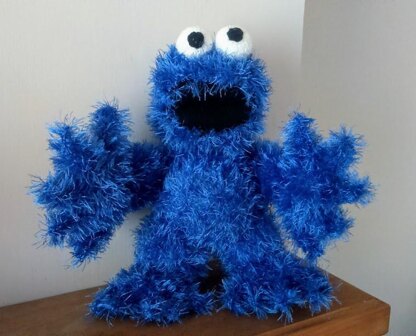 This Cookie Monster is knitted flat, seamed and stuffed.