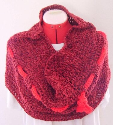 It is a crochet in the round infinity scarf/cowl. You can make it as long/short or wide/narrow as you desire. This pattern will work with any yarn and colours. Gauge is unimportant.