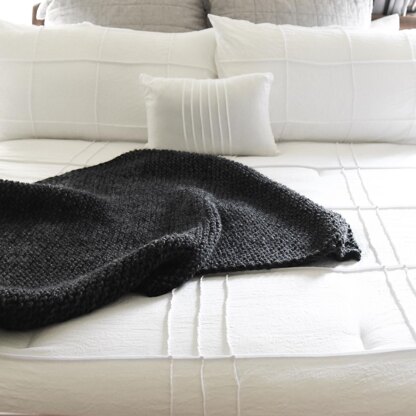 This 48" x 30" super cozy lap blanket is knit corner to corner with a finished edge, mirrored increases + decreases, and loads (and loads) of squish.