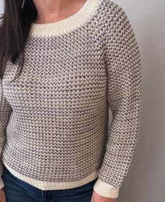 Sweater features an oversize fit and raglan design. It is knitted top down with German short rows that raise the neck and shoulders for a perfect fit. The half fisherman’s rib design is super stretchy and creates a thicker fabric perfect for cold winter days.
