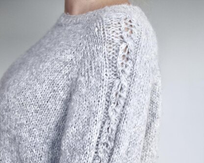 In wintertime there is nothing like a nice loose fit sweater knitted in chunky wool yarn. Corina sweater has a nice lace detail on the puffy sleeves. Knitted top down in one piece with chunky yarn, this sweater flies off the needles. A nice, everyday sweater for those extra cold days, or when you just want to curl up on the couch in a comfortable, cozy sweater.