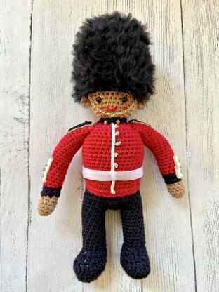 The Guardsman stands at approx 26cm tall and is worked from the feet upwards, with the arms and head being worked separately and added to the finished body.