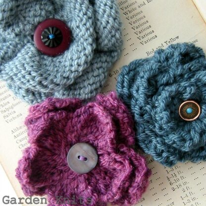 Instructions provided for three corsages - two rosettes and a double layered flower Uses double knit yarn - great for using up oddments. No special knitting skills or equipment required. Finished corsages approx 6-7cm diameter