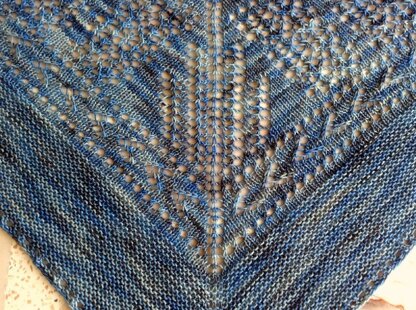 The bottom section of the shawl is knit in rows of garter, with a more invisible type of increase along the center spine.