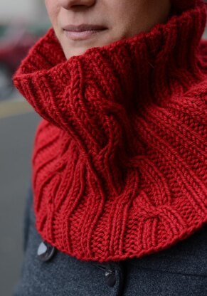 Worked in the round from the top down, the Cosmopolitan cowl combines ribbing and a few basic cables for style and shape.