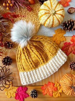 Up you winter hat game with this cosy crochet hat. Featuring a thick ribbed brim and crochet cables, this really will keep you cosy through the colder months.