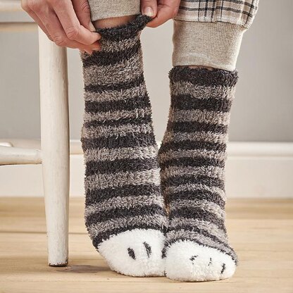 The purrfect cure for chilly toes. The Cosy Claws socks are a simple knit designed to fit the whole family. Available in four sizes from Toddler to Large Adult. These simple tube socks have no fiddly heel shaping.