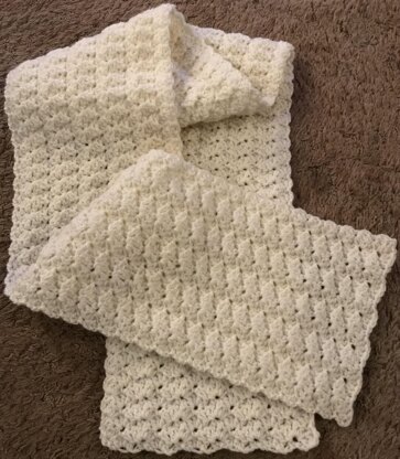 This crochet pattern is for a cosy scarf made in Aran Yarn.  This scarf crochets up quickly and is beautifully textured and warm.