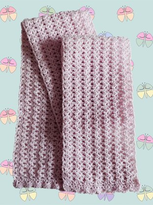 This is a crochet pattern for a lovely cosy scarf. It is made in double knit yarn and is quick to make up using a 5,00 crochet hook. It has an attractive border on each short edge. The pattern is written in English and uses UK Terminology. Based on trebles, this pattern is ideal for beginners. It can easily be made to any length but please bear in mind more yarn would be needed to make it longer.