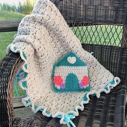 PDF Crochet Pattern! This cottage inspired baby blanket and pillow pattern make a whimsical crib set for darling little ones! The blanket works up quickly with one repeated stitch pattern and a lettuce edge ruffle, while the cute cottage pillow is fun and easy. Written for Beginner crochet levels, Cottage Darling is a perfect weekend craft project all will enjoy! Let’s get started and together crochet something beautiful! ~ CM