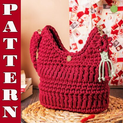 DESCRIPTION: This cotton cord crochet shoulder bag is made in one piece and decorated with a 3D crochet pattern. Base represents an oval made in the round as well as the upper part. The bag has a wide detachable crochet shoulder strap decorated with a fantasy pattern that is connected to the bag with strap buckles. It can be closed with a magnet button. Due to its medium sizes this bag is perfect for office, everyday life or special events.