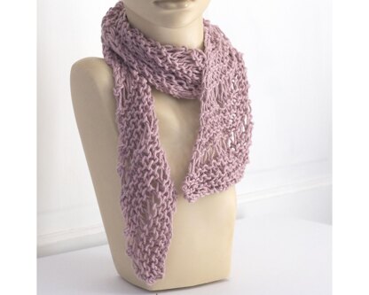 An easy, fast, versatile knitting pattern for cotton scarves in a pretty lacy pattern. Light weight for spring, summer and fall or a fashion accessory all year. The pattern works up quickly. The scarf is knit on the diagonal on large needles for a modern flexible garment. The scarf in the photo is about 2 1/2 inches wide and 54 inches long but you can easily make it any size you want. I use a soft cotton worsted weight yarn on size 13 needles but you can use almost any yarn you want.
