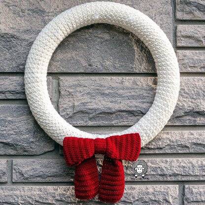 Add this classic, modern country holiday wreath to your holiday decor this year. The pattern has a simple repeat and is acccessible for beginners. A string of lights is added and concealed in the wreath to give it a beautiful glow at night. Instructions for adding the lights is included as well as step-by-step photo tutorial for creating the bow.