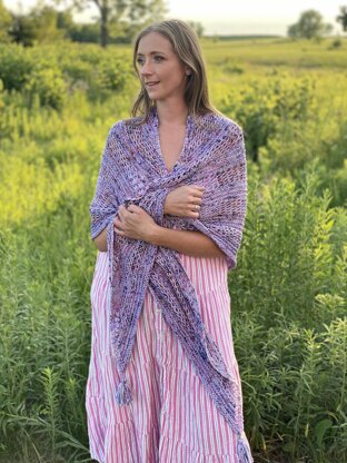 This cozy wrap pattern incorporates stockinette stitch, garter rows, and lace elements. I have included written instructions for all sections, and I added ‘checkpoint’ notes to keep track of your stitch count throughout. At the end, I highly recommend wet blocking your shawl to get all stitches and lines nice and tidy. Feel free to add tassels on the corners as well.