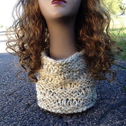 This stylish cowl is knit on the 41-peg Knifty Knitter large gauge loom using about 75 yards of a super bulky yarn.