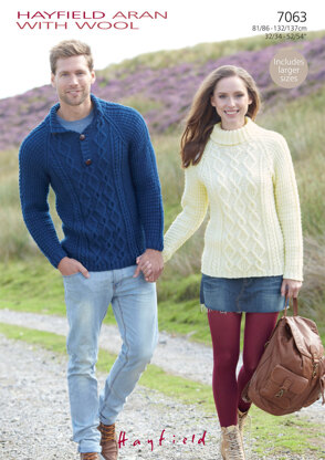 Cowl Neck and Stand Up Neck Sweaters in Hayfield Aran with Wool 100g - 7063 - Downloadable PDF is a Knitting pattern by Hayfield, available as a Downloadable PDF and includes instructions in English. Super fun to make, this pattern could be your next masterpiece!