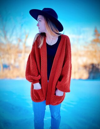 I love the cozy oversized fit of this casual cardigan. The longer length allows it to be worn with leggings or as outerwear for spring or fall days. Moss stitch adds an element of luscious texture and depth to the fabric.
