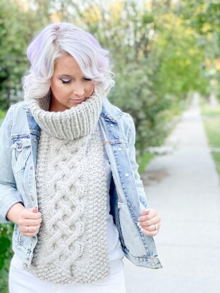 Note: Knit in the round with a double brim technique for the cowl, you will work the front and back panels separately and flat. Get ready for the coziest and most trendy knit dickie you’ve ever laid eyes on.