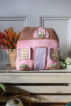 The Cozy Pink House Pillow is a knit pillow pattern made with medium weight yarn that has a skill level of easy.