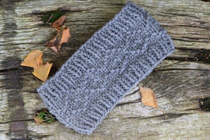 The Cozy Winter Headband is knitted in the round. The headband has ribbing and a beautiful stitch pattern.