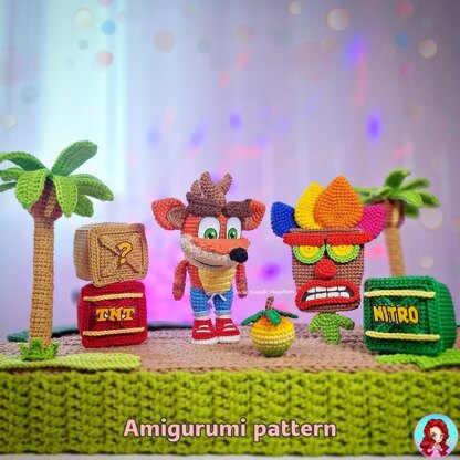 Crash Bandicoot Crochet Pattern Set – Digital Amigurumi Bundle with Character, Mask, Boom Box Trio & Fruit Bonus - Fanart inspired