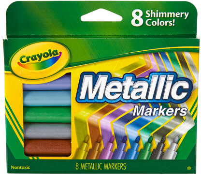 CRAYOLA-Metallic Markers. Rich, radiant and shiny! Crayola metallic markers add an extra sleek sheen to homemade cards, crafts and colorful art projects. This package contains eight 5-1/2 inch metallic markers in purple, copper, green, slick, gold, pink, black and cobalt colors. Non-toxic. Conforms to ASTM D 4236. Imported.