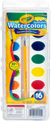 CRAYOLA-Washable Watercolors in 16 colors. 1 Natural Hair Paintbrush. Washability you can trust! Non-toxic. Made in USA.