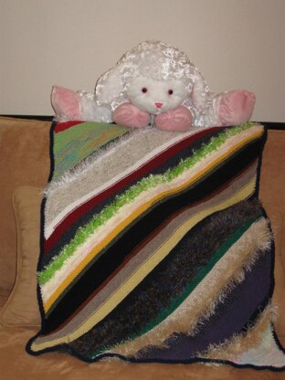 This afghan is a great stash buster! It is also a wonderful opportunity to try out new yarns .....have fun with it! Pull together "odds and ends" and orphan balls of yarn to create a unique blanket any child will love. There are only a few small rules:
