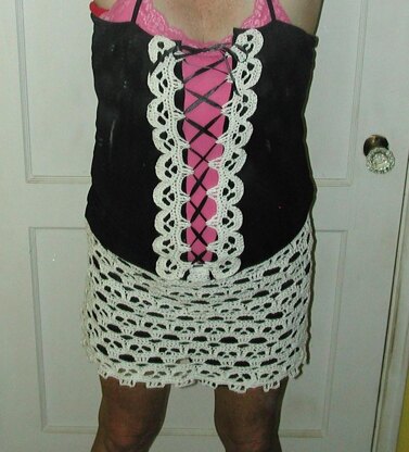 Creepy Skull border, or Corset lacing. Make in any weight yarn. Directions include how to make the length you desire, and how to sew to a cami or t shirt. Skirt patten available here: http://www.ravelry.com/patterns/library/creepy-skull-mini-skirt Coupon Code BOGO to get both patterns for the price of 1.