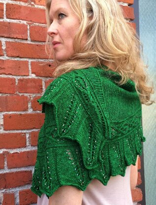 Crescendo is an asymmetrically shaped shawl that is guaranteed to hold your interest from start to finish. The upper section is a ram's horn shape that is worked side to side. Stitches are picked up along the bottom edge and the beaded ruffle is worked downward. This shawl combines the best of garter stitch, cables, lace, and beads in a showstopping design. I hope you enjoy every stitch!