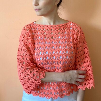 Crete sweater is super breathable and therefore perfect for sunny days when it’s still a bit breezy. It’s a perfect clothing item to wear as beach cover-up, but still airy. Pattern is available in 5 sizes. Bust/hips: XS -95 cm S - 104 cm M - 113 cm L - 122 cm XL - 131 cm