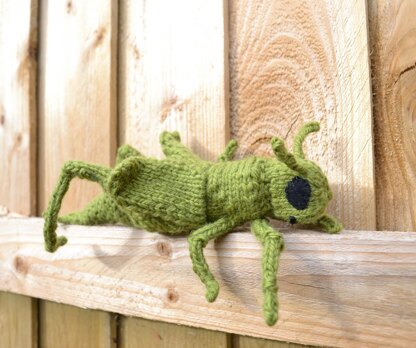 It is really not as hard as it might look. All knitted on two needles, with a bit of icord knitting. I am rather fond of him, and have named him Charlie Cricket. I have tried to be as realistic as possible, apart from his smile which I could resist adding.