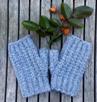 The Crickhollow Mitts are made with vertical rows of half double crochet stitches with an intriguing texture. The thumb is worked separately and attached when the side seam is closed using slip stitches. Directions are for sizes Adult Small, Medium and Large, but the mitts could actually be made in any size by following the instructions to fit your hand.