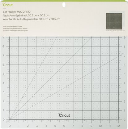 This double-sided, 12x12 inch self healing mat is the perfect cutting surface for smaller projects. The extra thick surface prevents blade cut through, perfect for rotary cutters and precision blades. The reference marks match the standard Cricut machine mat size. Not for use in the Cricut machines. This package contains one 12x12 inch self healing cutting mat. Imported.