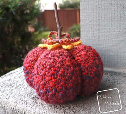 Also available for free on DivineDebri[dot]com Who else loves when Fall finally turns up? It’s my favorite time of year, I get in a lovely pumpkin mood and want all things pumpkin, including home decor. This simple and easily customized pumpkin is so quick to make, you could have mountains of them by October in any color combination or yarn weight you have in your stash. Now grab your favorite spiced latte and a soft place to sit, you’ve got work to do.