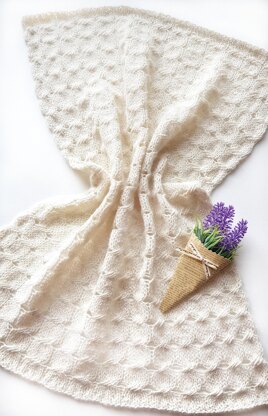 Level: Beginner (cast on, bind off, knit stitch, purl stitch, yarn over, slip stitch) Materials:*8 skeins of Katia Angora 100% (10g (1/3oz) – 50m (54yds). Or any fingering weight yarn.Circular or straight knitting needles 3mmTapestry needle (weave the ends)*Scissors (only for cutting the yarn)