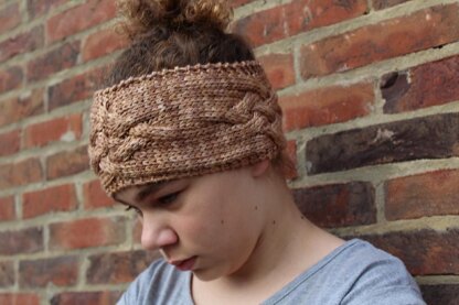 This headband or earwarmer is simple yet eye catching in it's construction as it is knitted fat and seamed at the end.