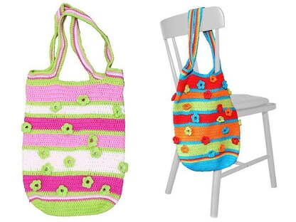 This colorful bag is easy to crochet and yet has that special something: the little flowers allow you a small peek at what's inside!